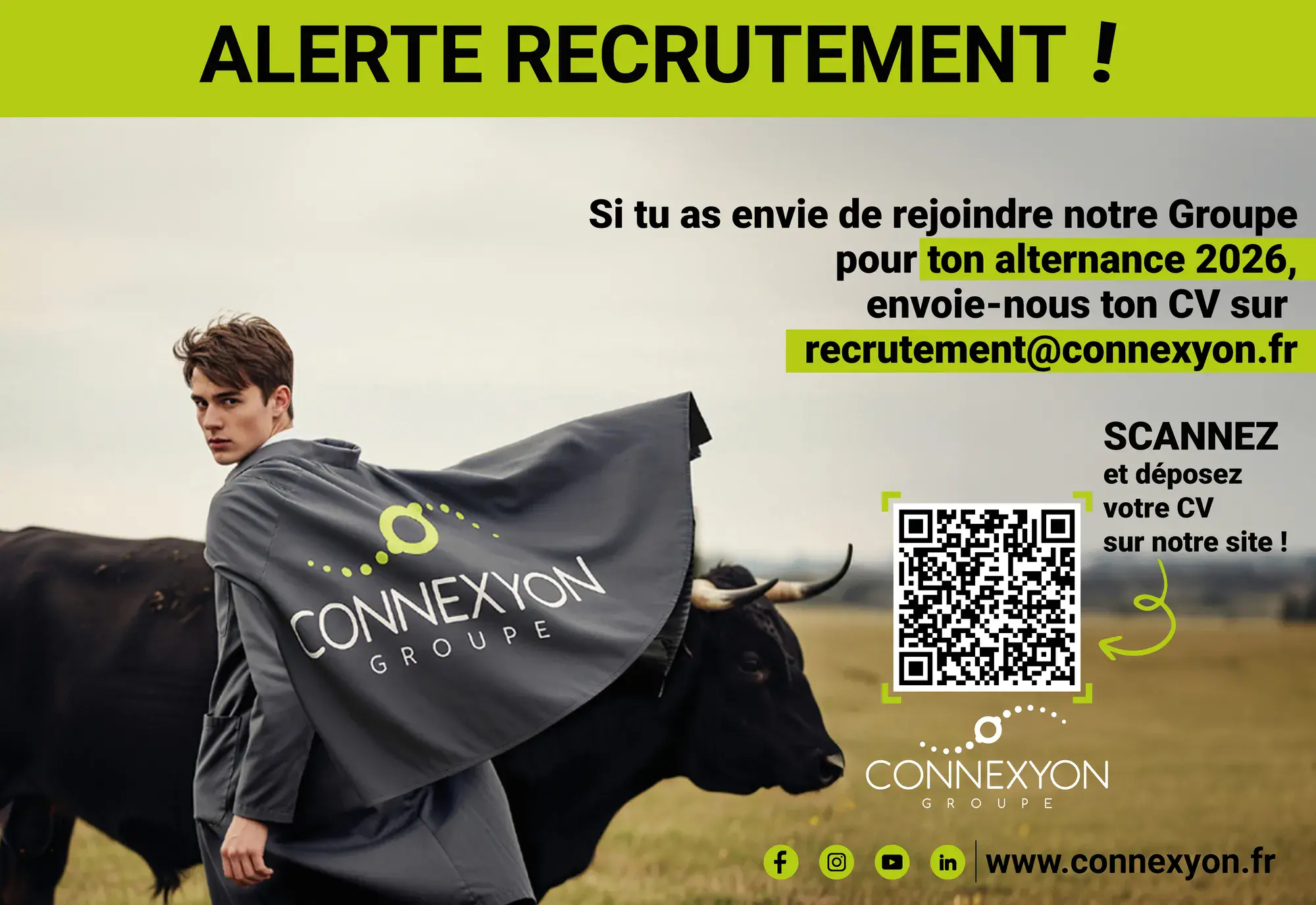 Connexyon Coop recherche ses futurs alternants (e)(H/F) pour la rentrée 2026, nous lançons les recrutements suivants :